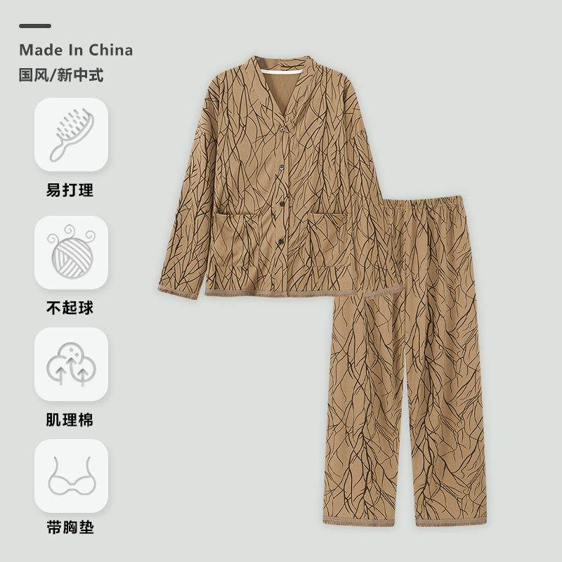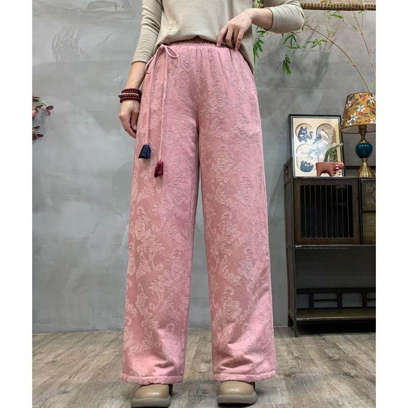 新中式国风棉麻提花加棉保暖休闲阔腿长裤女复古百搭流苏直筒裤子
