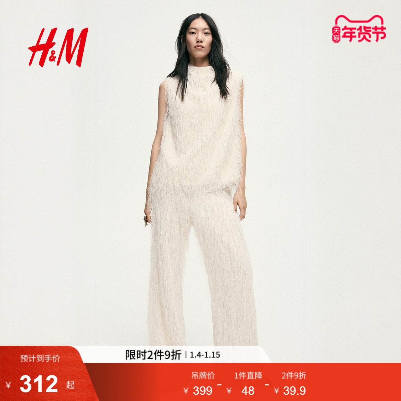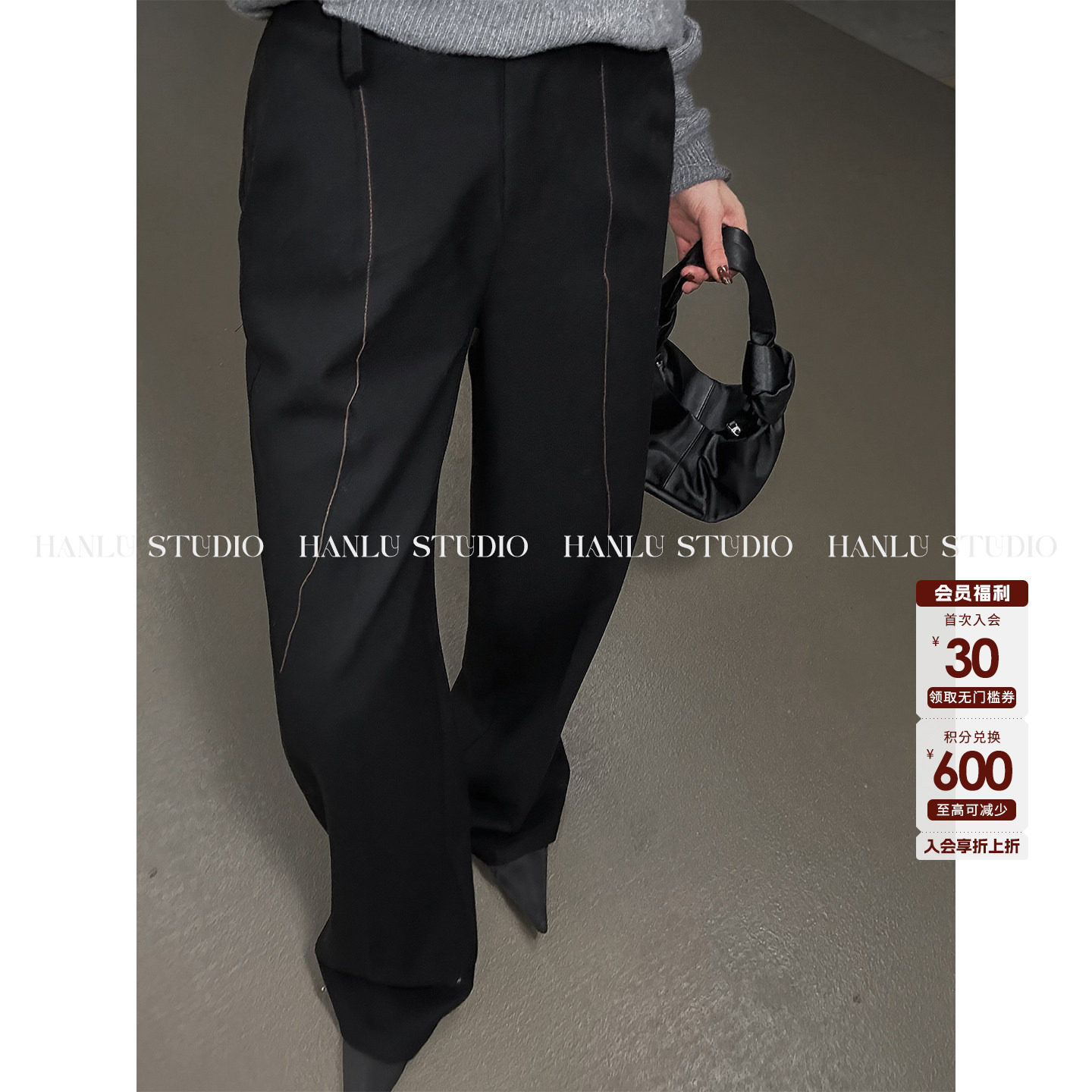 HanLu studio原创小众立裁明线拱针流苏宽松直筒羊毛高腰长裤冬