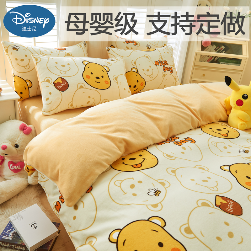 TeenieWeenie小熊牛奶绒四件套美拉德风珊瑚绒被套加绒床单三件套
