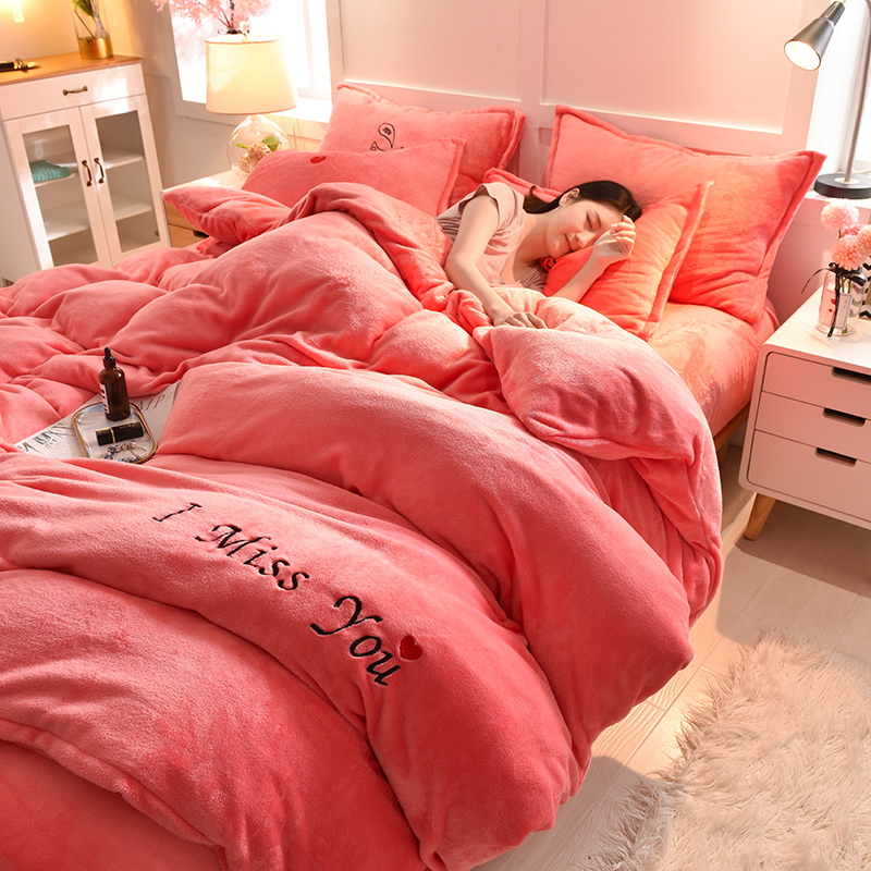 牛奶绒四件套加厚珊瑚绒床单被罩南通床上用品三件套冬季加绒被套