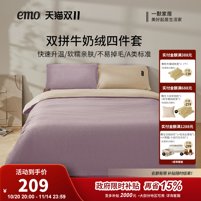 一默双拼牛奶绒床上四件套加厚加绒法兰绒珊瑚绒被套床单床上用品