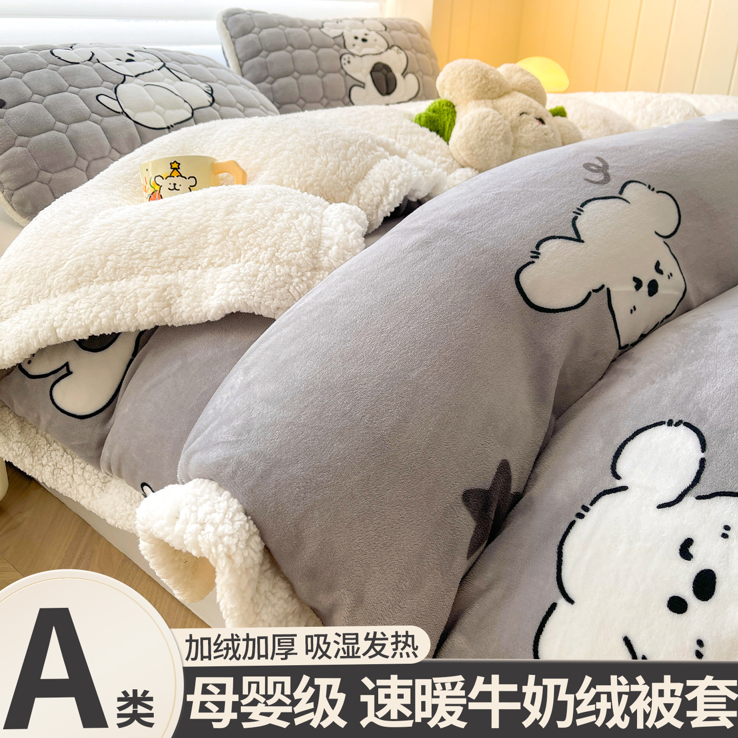 A类牛奶绒四件套加厚珊瑚绒双面法兰加绒被套床单床笠床上三件套a