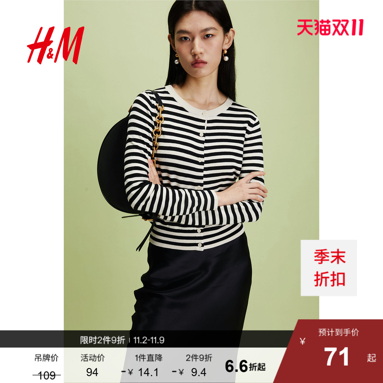 HM女装毛针织衫2025年秋季新款慵懒打底衫开衫薄款外套0579541