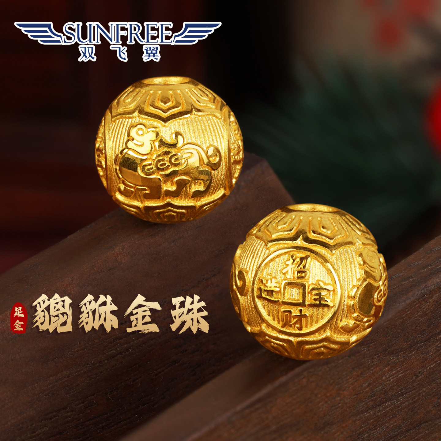 千年珠宝黄金貔貅单个手链男转运珠足金999金钱珠3d硬金皮丘新款