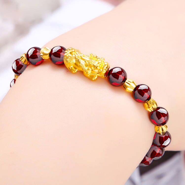 貔貅手链男女仿真黄金转运珠足金999石榴石3D硬金招财手串本命年