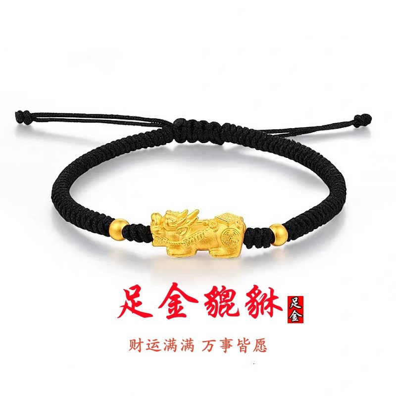 细手绳黄金3d硬金貔貅串珠转运珠配绳防水本命年红绳手链细路路通