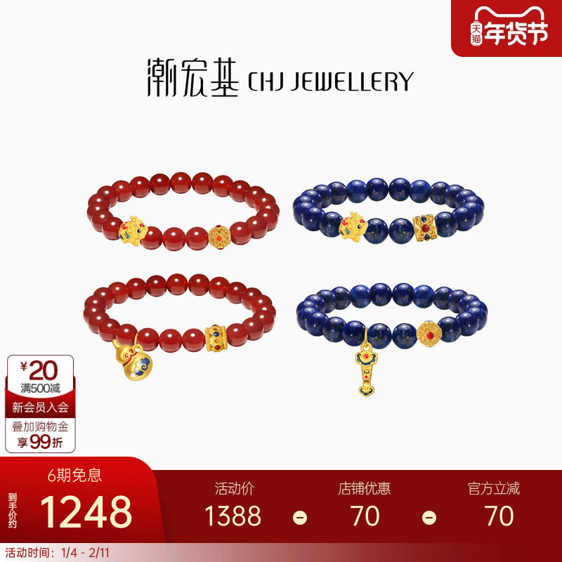 潮宏基招财貔貅黄金手链转运串珠足金手绳5D硬金珐琅生日礼物X6