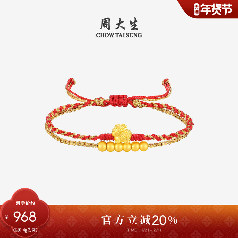 新年礼物周大生黄金手链足金锦鲤元宝手绳貔貅硬金转运珠送女朋友