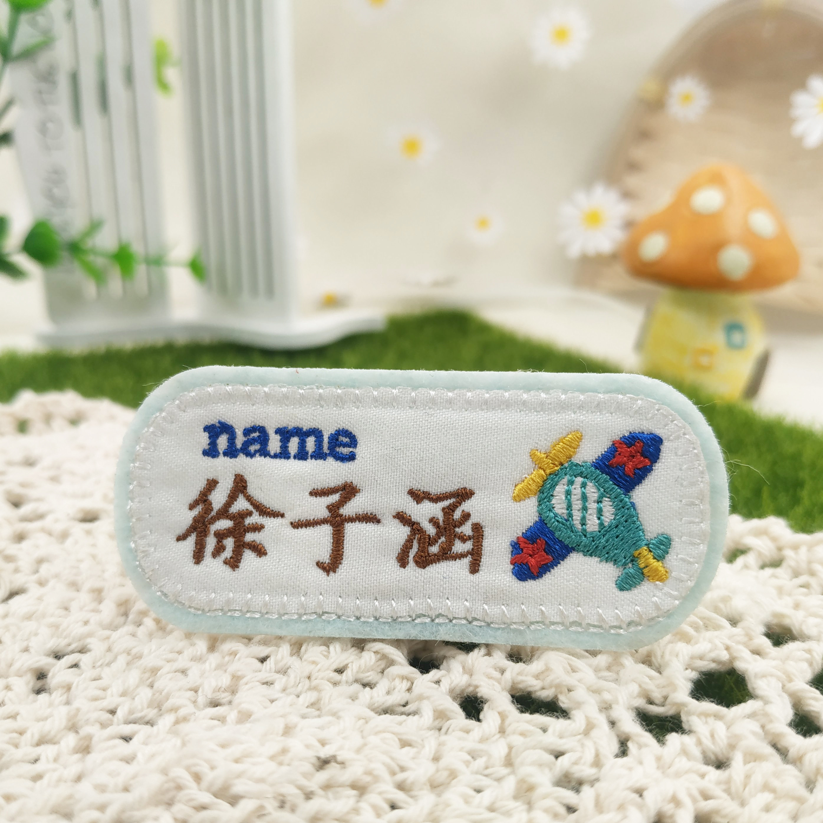 原创日式飞机姓名贴宝宝衣服刺绣字幼儿园名字贴刺绣可缝防水贴男