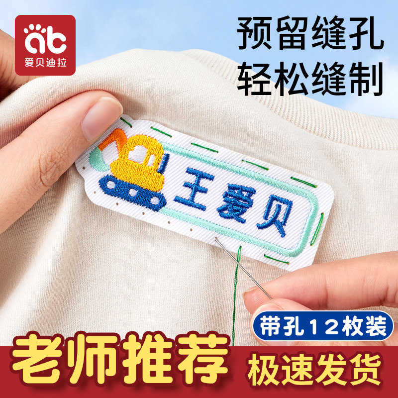 幼儿园名字贴刺绣可缝带孔宝宝姓名贴布缝制款校服入园被子标签贴