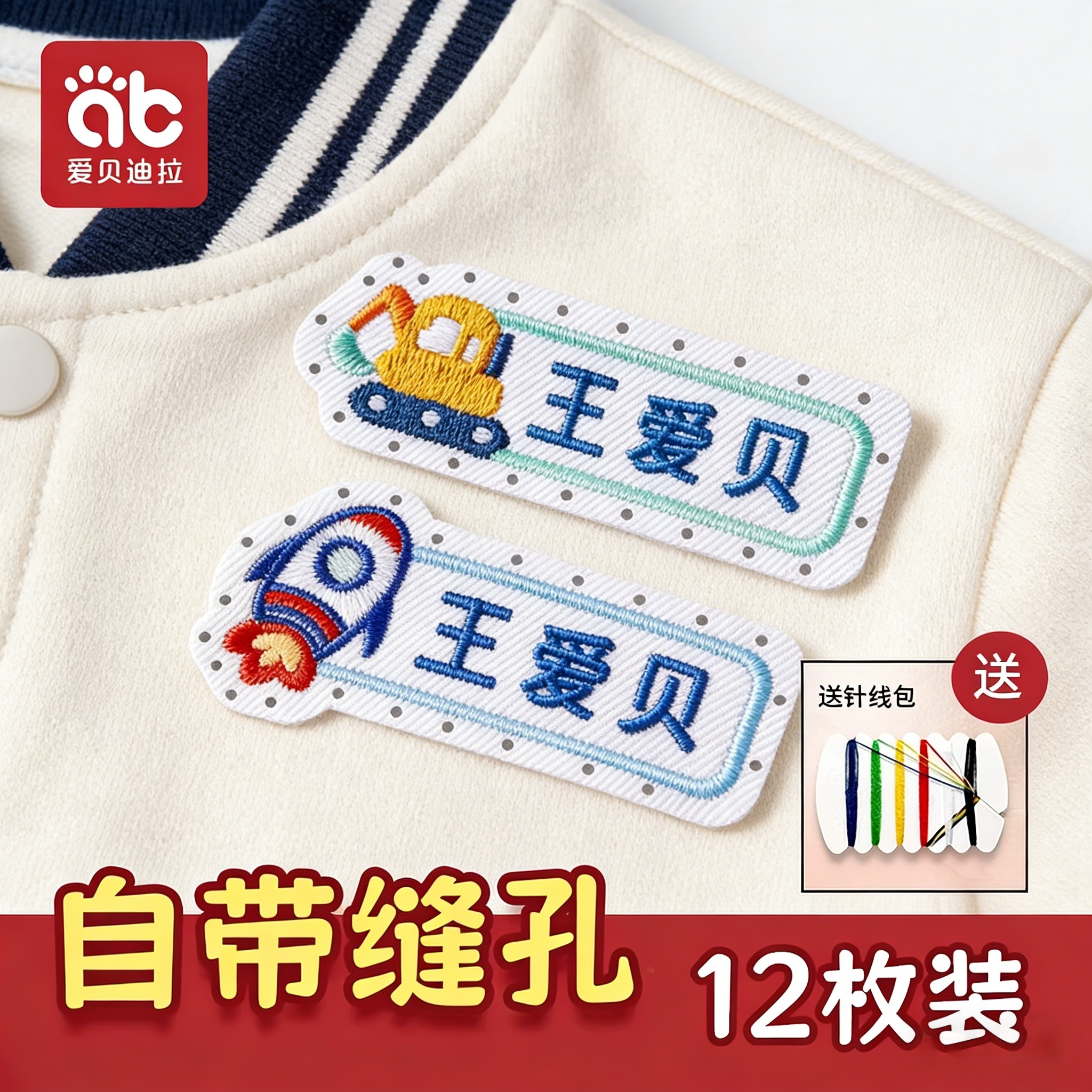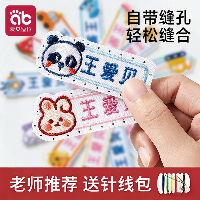 幼儿园名字贴刺绣可缝宝宝姓名布贴缝制款防水校服入园被子贴卡通