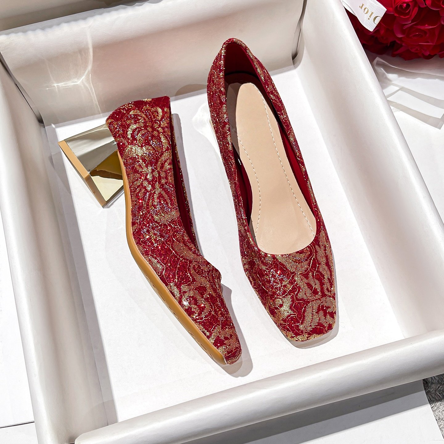 秀禾服结婚鞋子2024年新款春秋粗跟新娘鞋中式礼服孕妇可穿不累脚