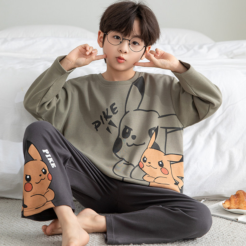皮卡丘儿童睡衣青少年初中生春秋家居服男童纯棉长袖长裤春季套装