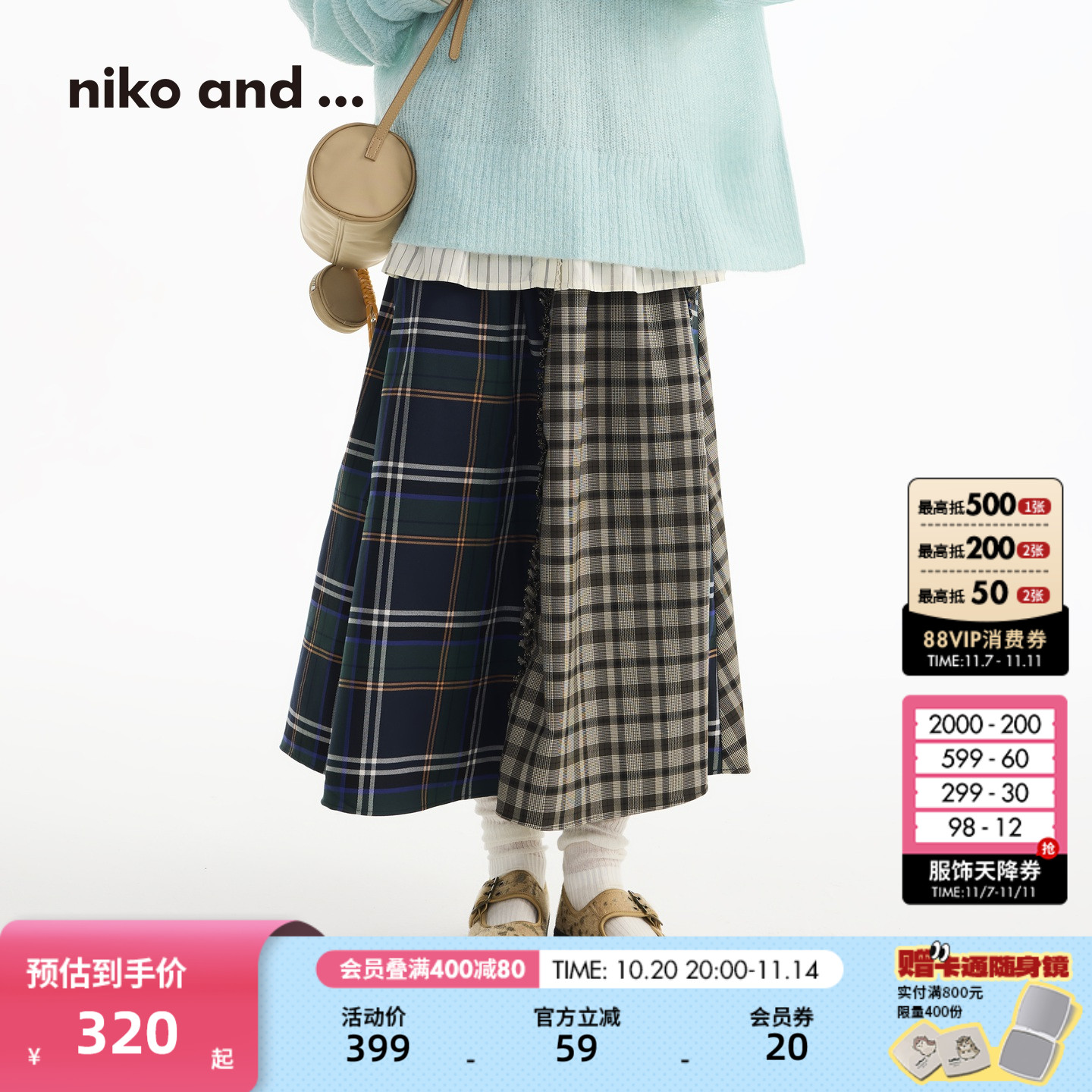 niko and ...裙子女2025秋冬新款格纹木耳边拼接半身裙498077