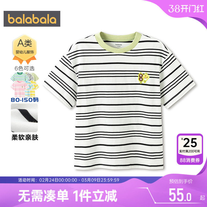 巴拉巴拉儿童短袖t恤男童女童条纹上衣夏装新款童装大童打底衫潮t