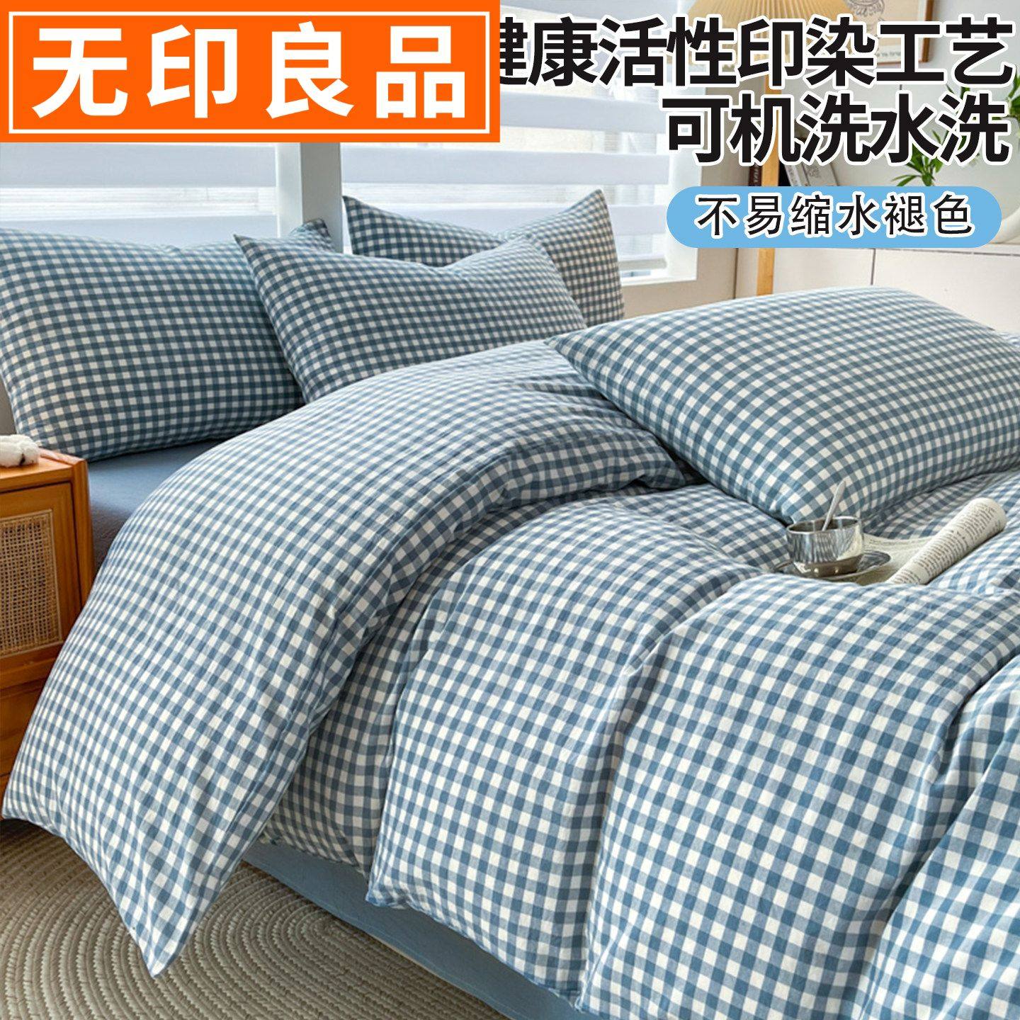 纯棉被罩无印良品A类全棉被套单件加厚180x200简约格子床上四件套