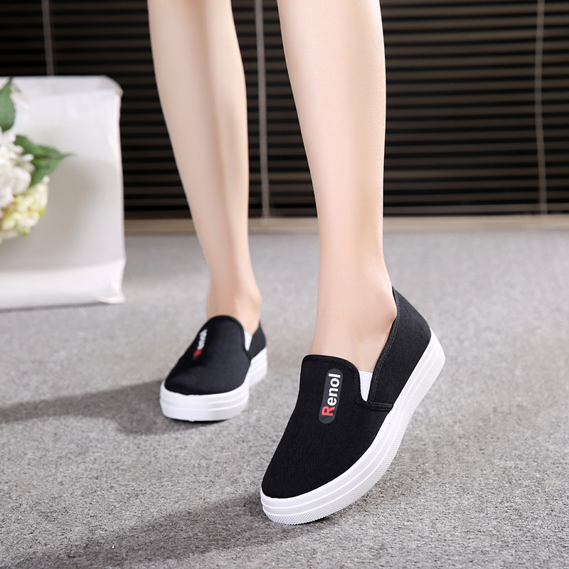 春夏季帆布鞋学生鞋懒人鞋老北京布鞋韩版潮厚底板鞋低帮平底女鞋