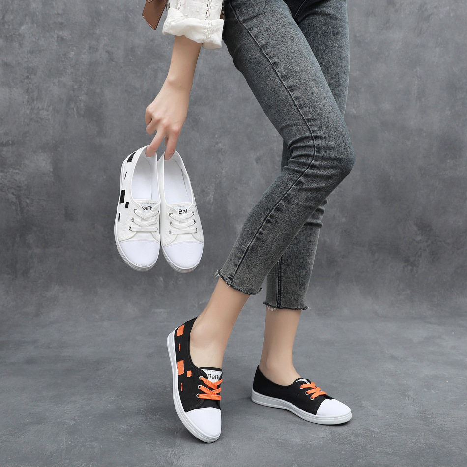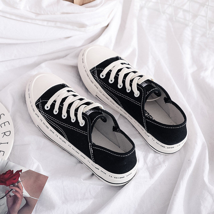 - 帆布鞋 韩版 女 平底 学生 百搭