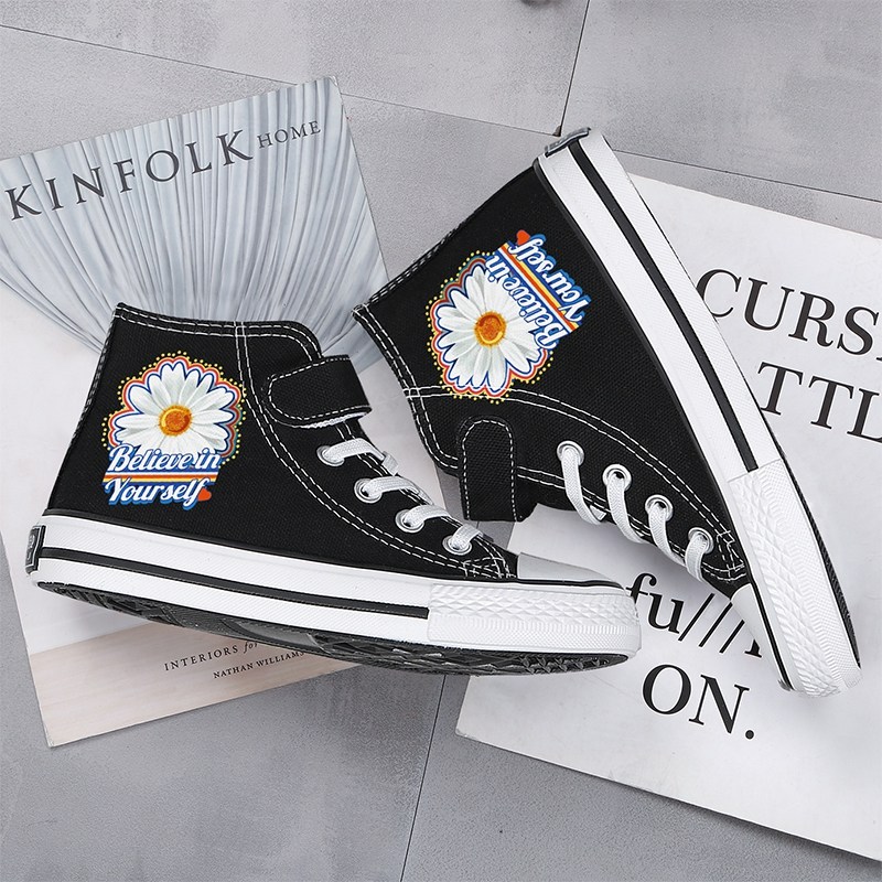 韩版帆布鞋时尚女鞋中小学生潮流涂鸦板鞋高帮布鞋子平底休闲鞋女