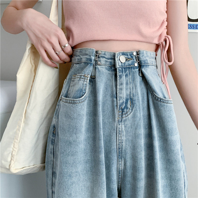 牛仔裤子女浅色直筒高腰宽松阔腿学生显瘦直筒百搭夏季薄款九分裤