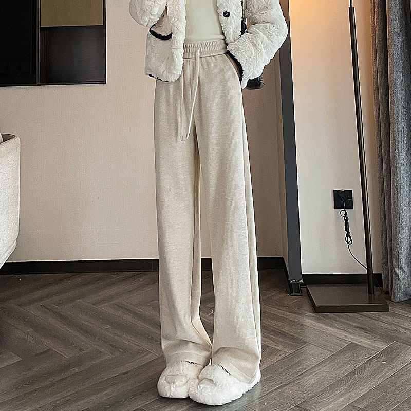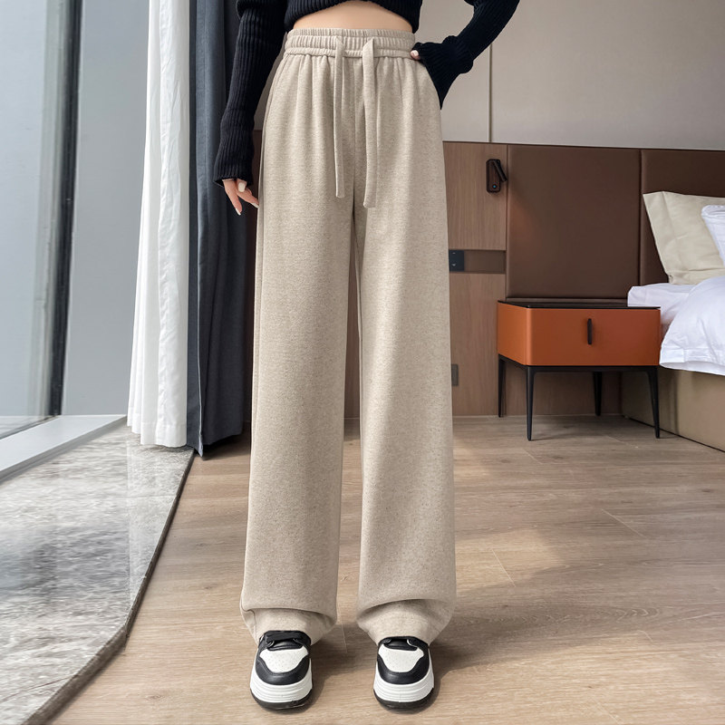 初中高中学生休闲裤子女高个子窄版直筒运动毛呢裤秋冬加厚阔腿裤