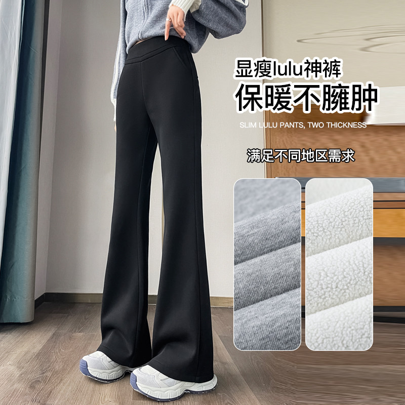 初中高中学生加长裤子女高个子窄版直筒运动微喇裤秋冬加绒阔腿裤