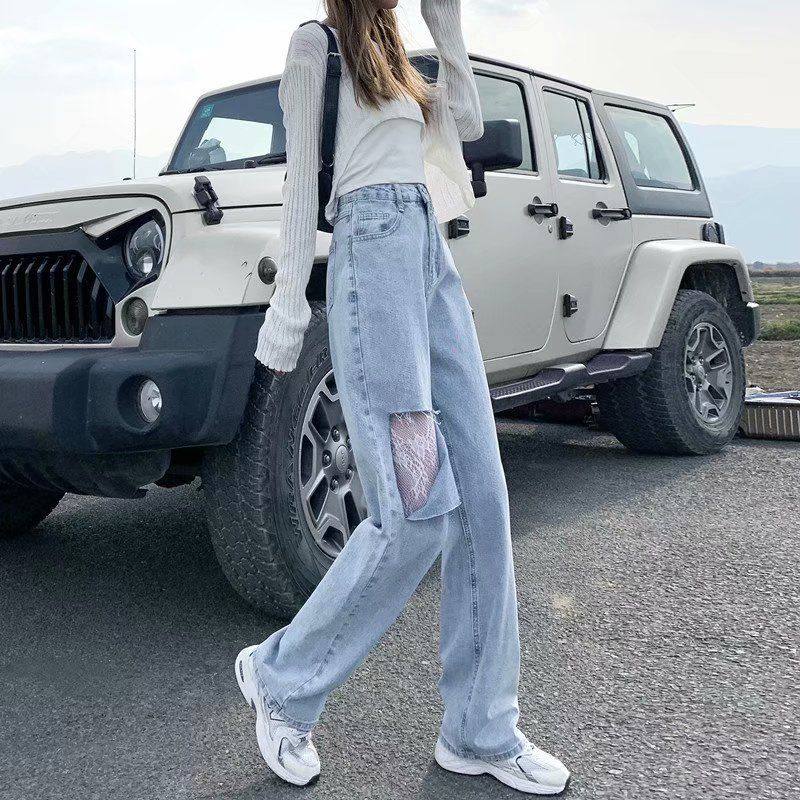 - 破洞牛仔裤女宽松乞丐 韩国 bf