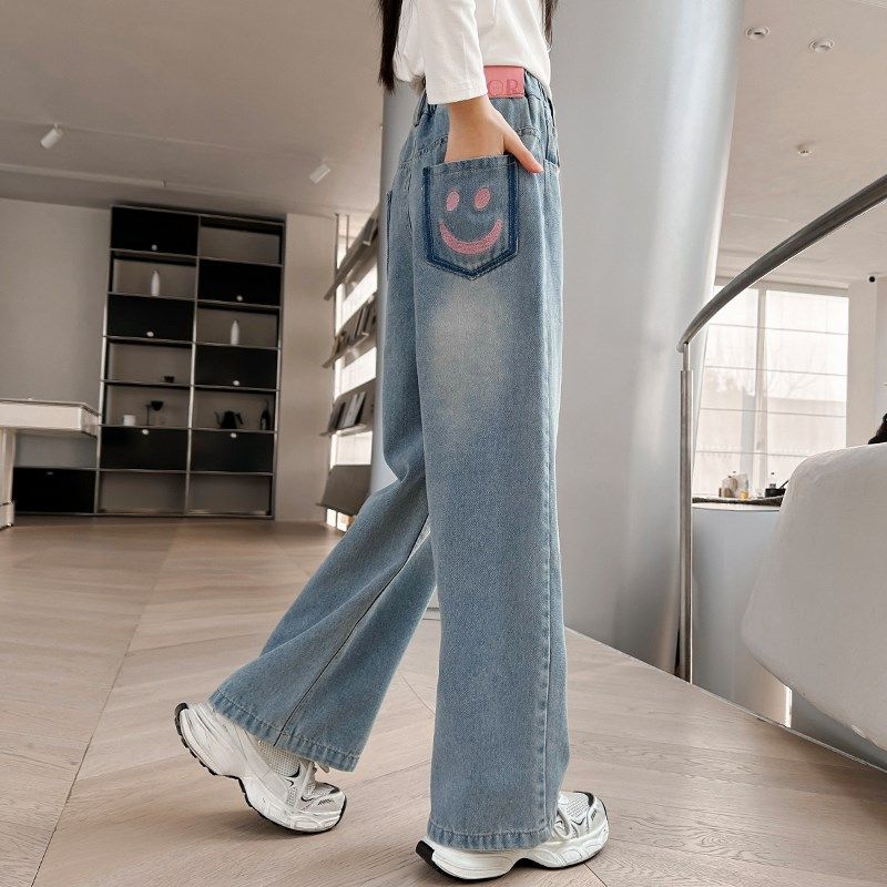 女童牛仔裤春秋款2024新款初中学生宽松儿童裤子女大童春装阔腿裤