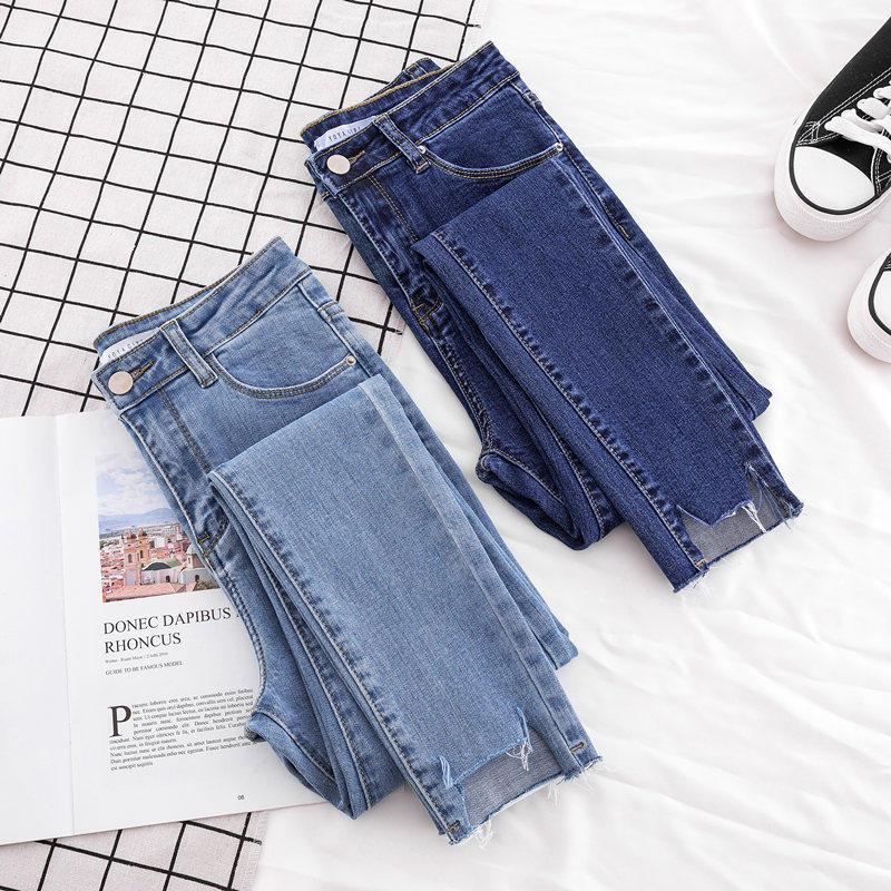 高腰弹力牛仔裤女显瘦百搭春秋新款铅笔裤子女紧身小脚长裤学生潮