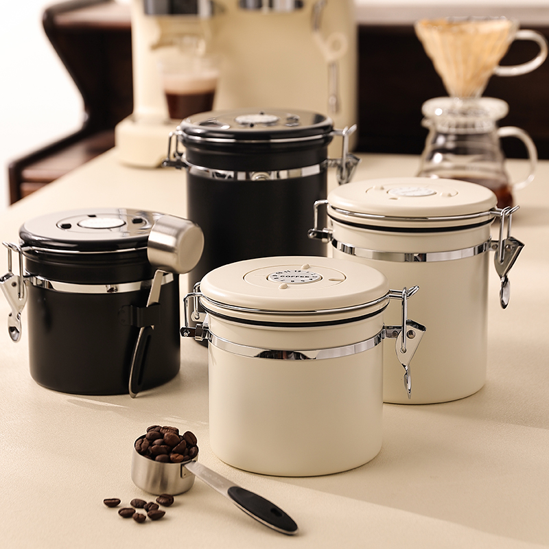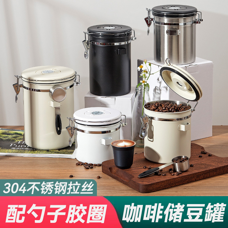 不锈钢咖啡豆保存罐单向排气咖啡粉奶粉密封罐储存罐收纳储豆罐子
