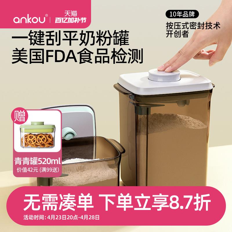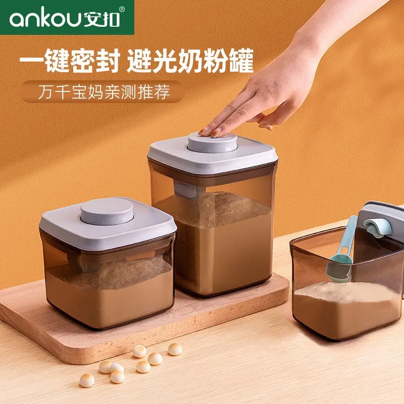 安扣按压式按扣刮平奶粉密封罐辅食防潮婴儿米粉存储罐奶粉分装盒