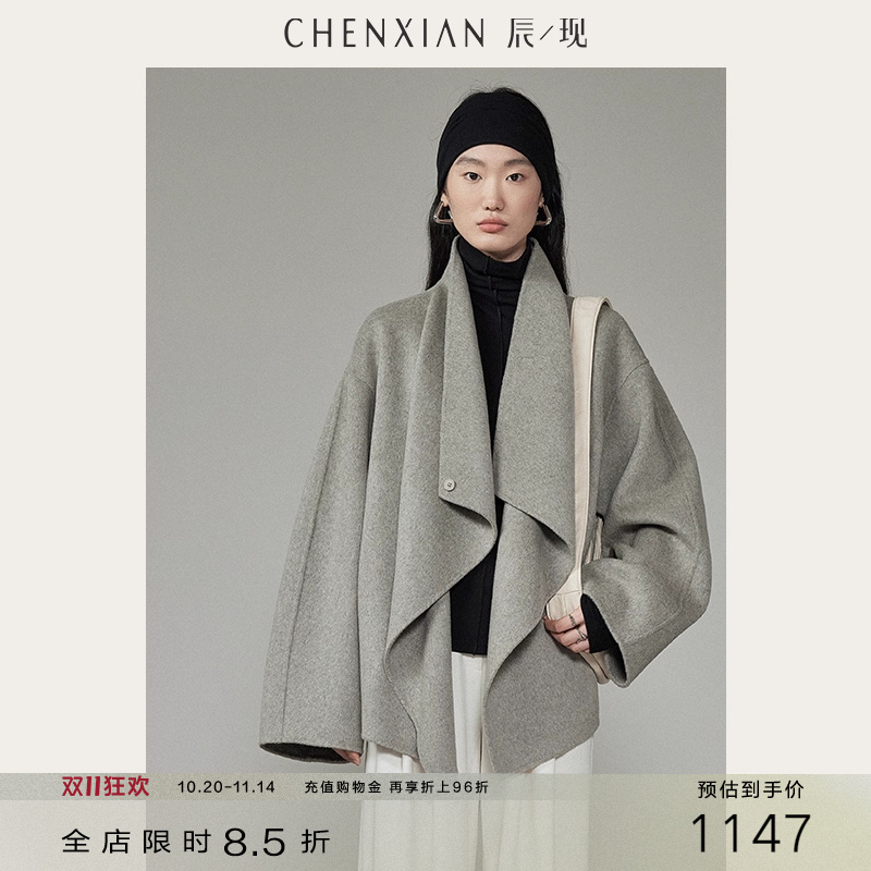 cchen陈陈_白色斗篷毛呢外套女秋季短款羊毛双面呢羊绒大衣小个子