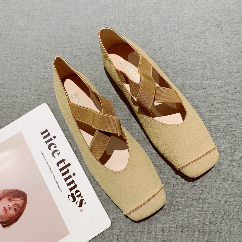 2026春秋方头单鞋时尚平底鞋女韩版绒面浅口单鞋女鞋大码休闲鞋