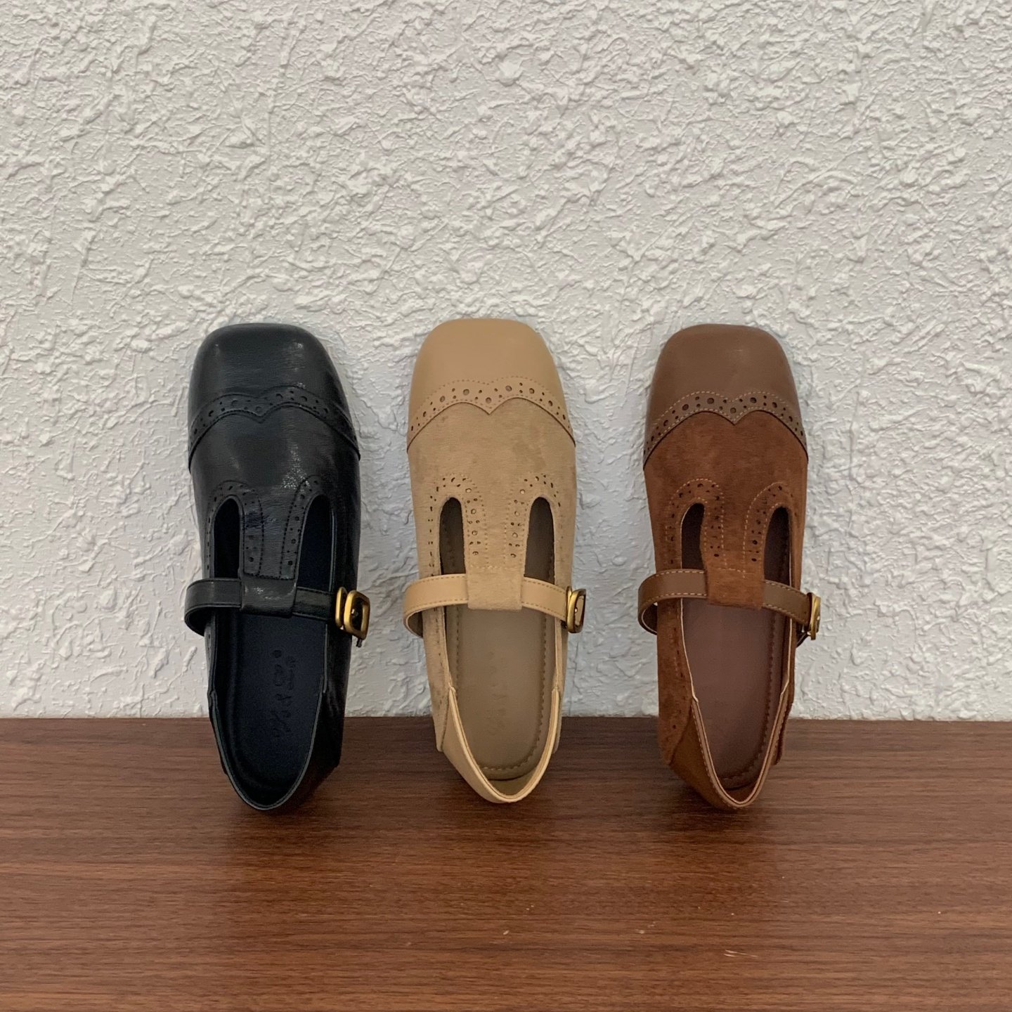 复古感拉满!外贸出K圆头绒面平底单鞋复古百搭一字扣玛丽珍女鞋
