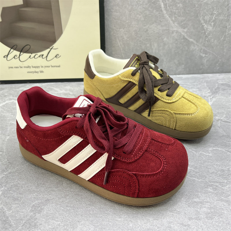 2026春季复古德训鞋女绒面系带平底运动休闲鞋轻便舒适软底女单鞋