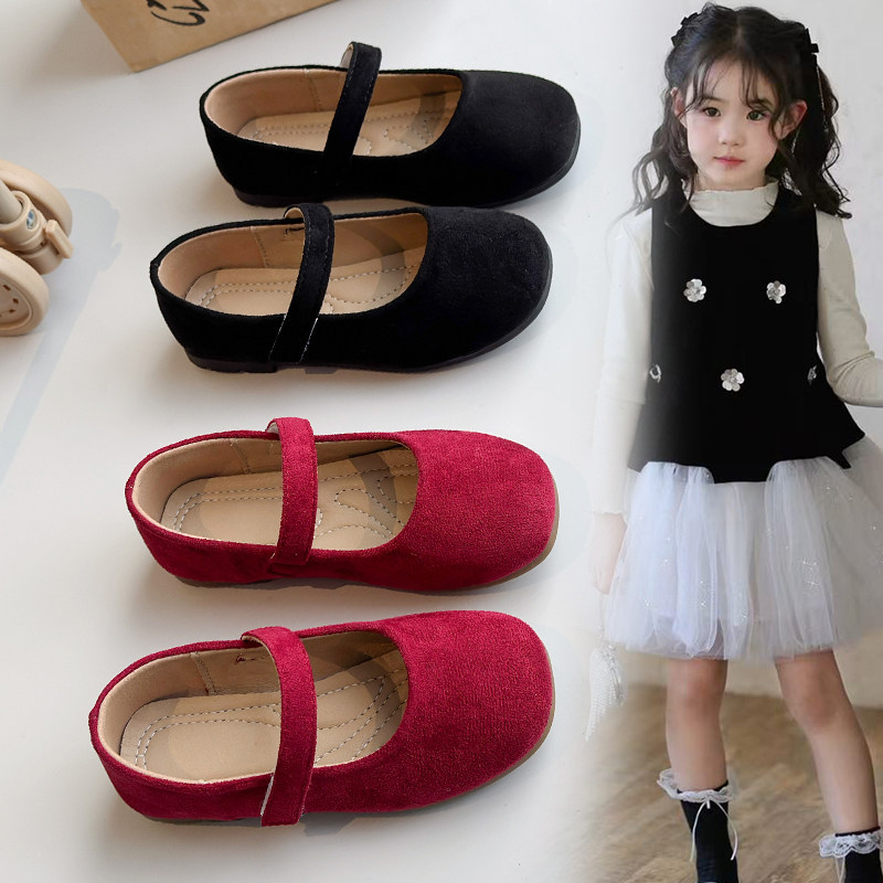 女童公主鞋儿童玛丽珍皮鞋2026春季新款软面软底磨砂绒面平底单鞋