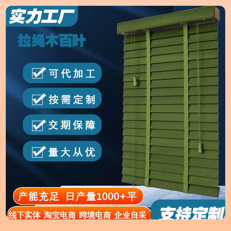 实木叶帘新中式窗帘百叶茶室遮光客厅居卧室办F$p^lx}$公电动百窗
