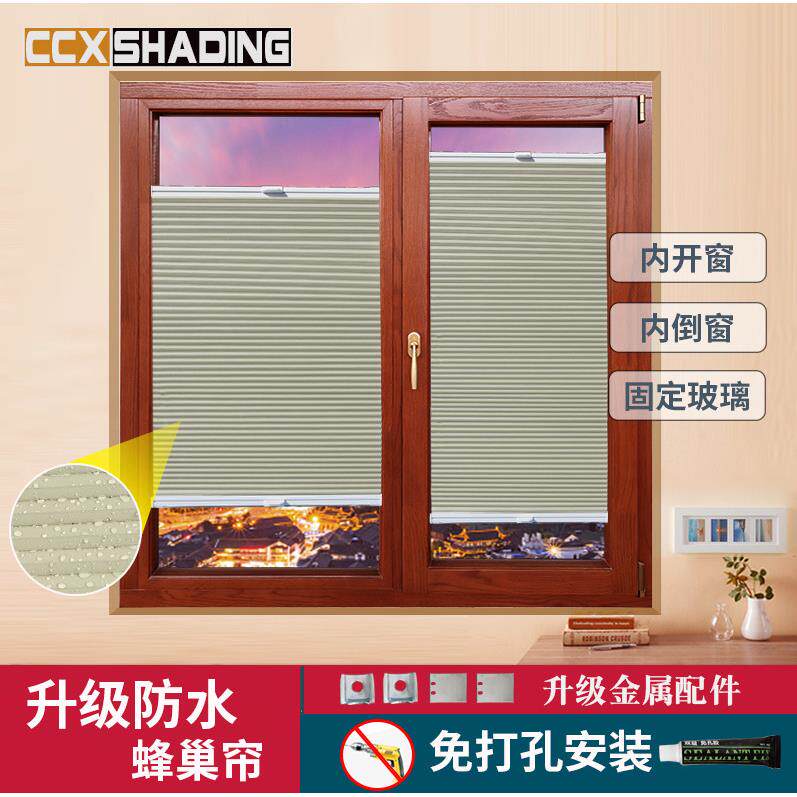 内开 窗窗帘百叶窗帘免打孔厨房化妆室防水蜂巢帘遮光隔热风琴帘