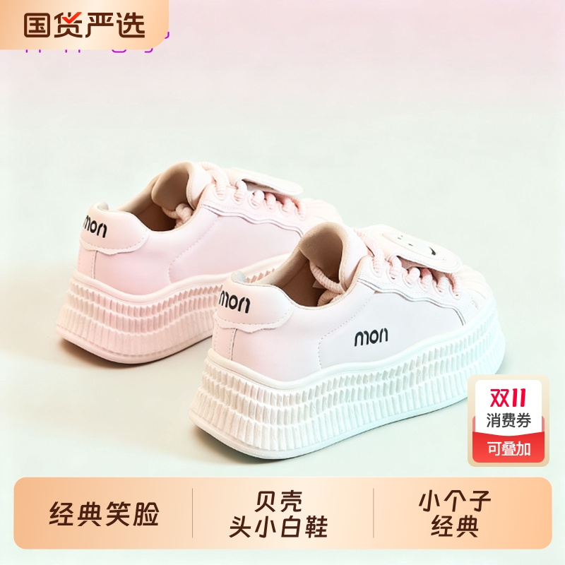 贝壳头小白鞋女厚底轻便2025年秋冬季爆款百搭笑脸小众设计感板鞋