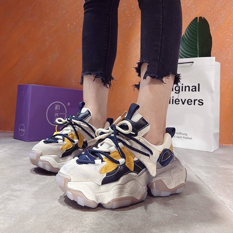 做旧擦色老爹鞋女2023年秋季新款运动休闲鞋女韩版厚底鞋子单鞋女