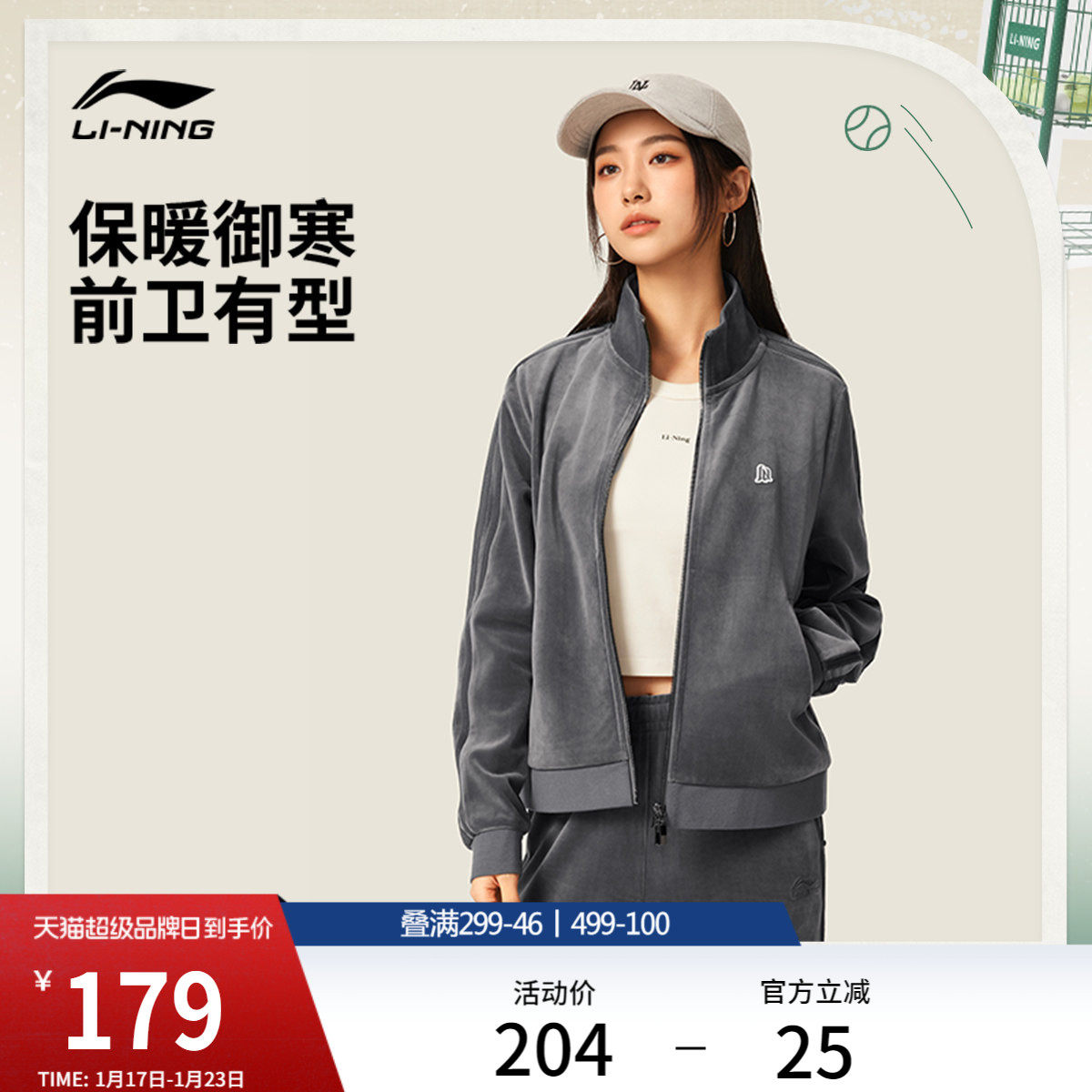 李宁丝绒外套女款官方冬季新款拉链正肩卫衣立领上衣针织运动服女
