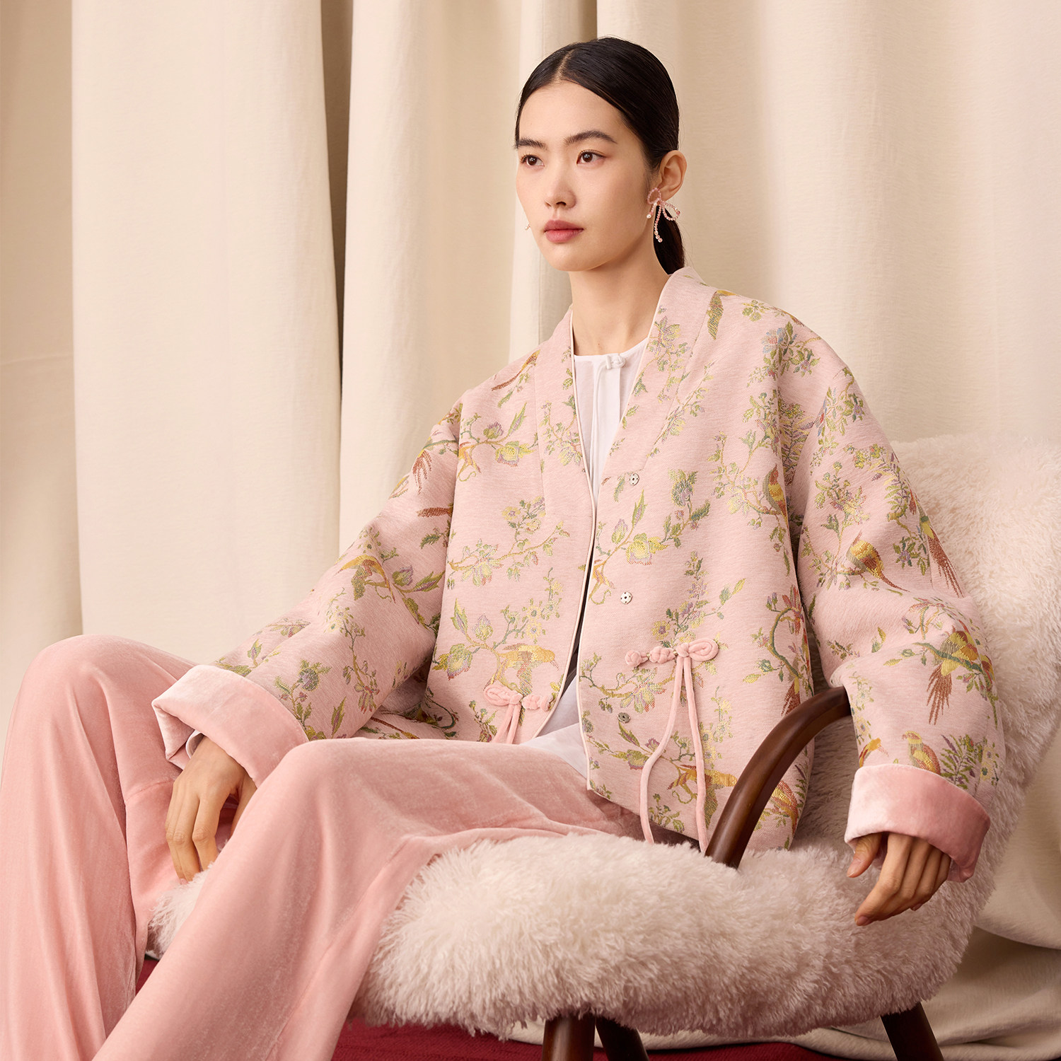 COCOBELLA新中式提花缎面外套女别致丹青丝绒国风上衣SC3203