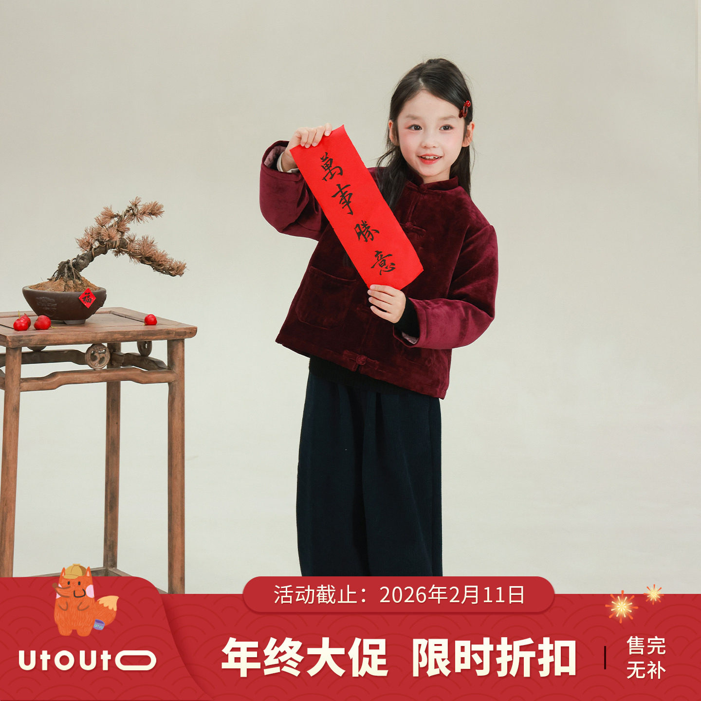 Little Naive女童新中式上衣秋冬立领亮片外套儿童国风丝绒外套女