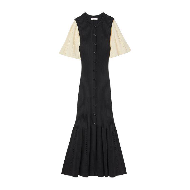 SANDRO Outlets秋冬女装法式时尚优雅黑色撞色灯笼袖针织连衣裙