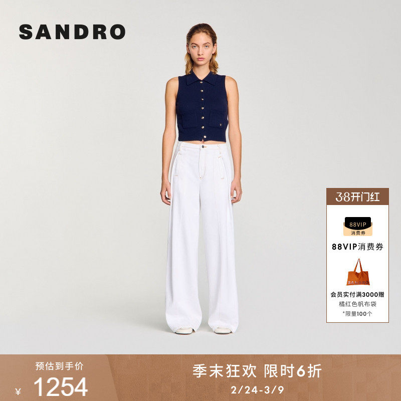 季末6折SANDRO2025秋冬经典款女装法式棉质白色复古阔腿牛仔长裤