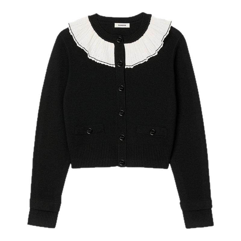 季末6折SANDRO2025秋冬新款女装法式气质拼接撞色荷叶领针织开衫