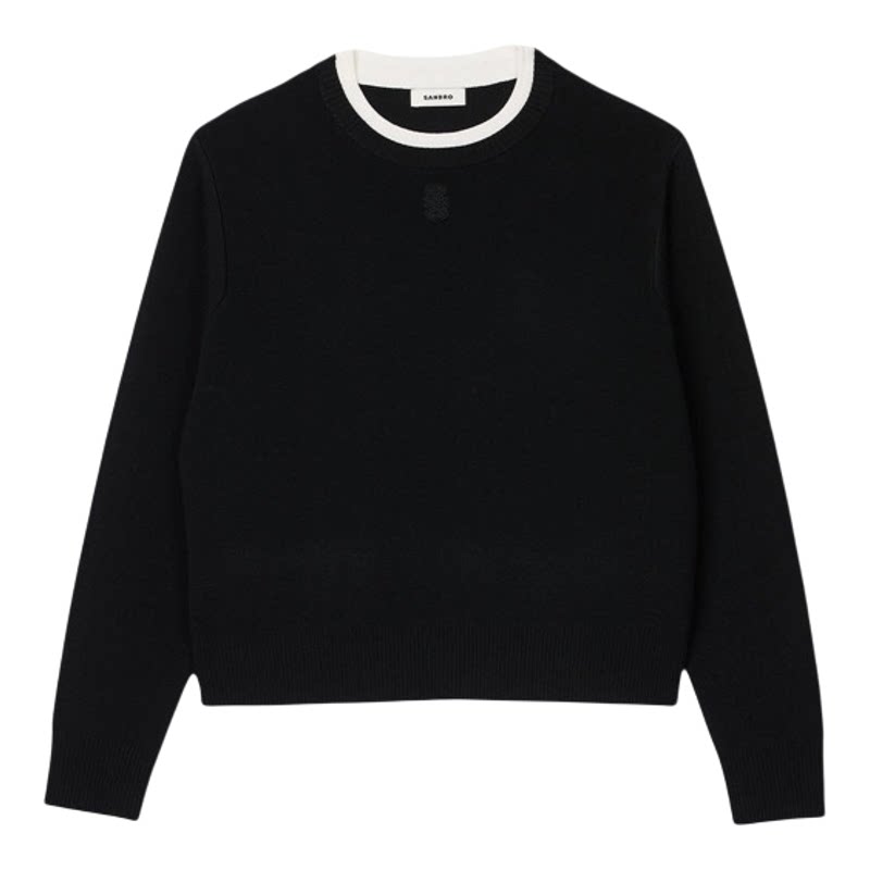季末6折SANDRO2025秋冬款女装法式黑色撞色圆领高腰长袖针织衫