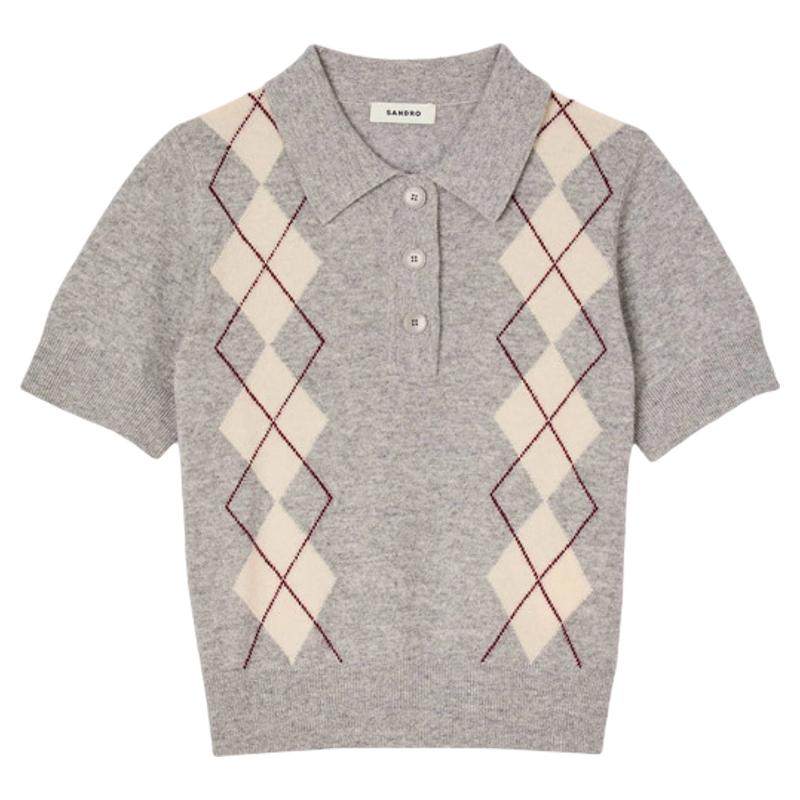 季末7折SANDRO2025秋冬新款女装嵌花工艺菱格图案POLO领针织衫