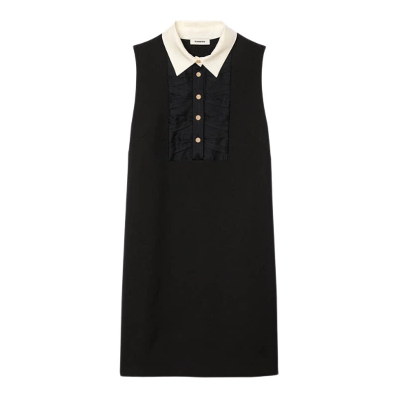 季末6折SANDRO2025秋季新款女装法式甜美压褶无袖黑色短款连衣裙