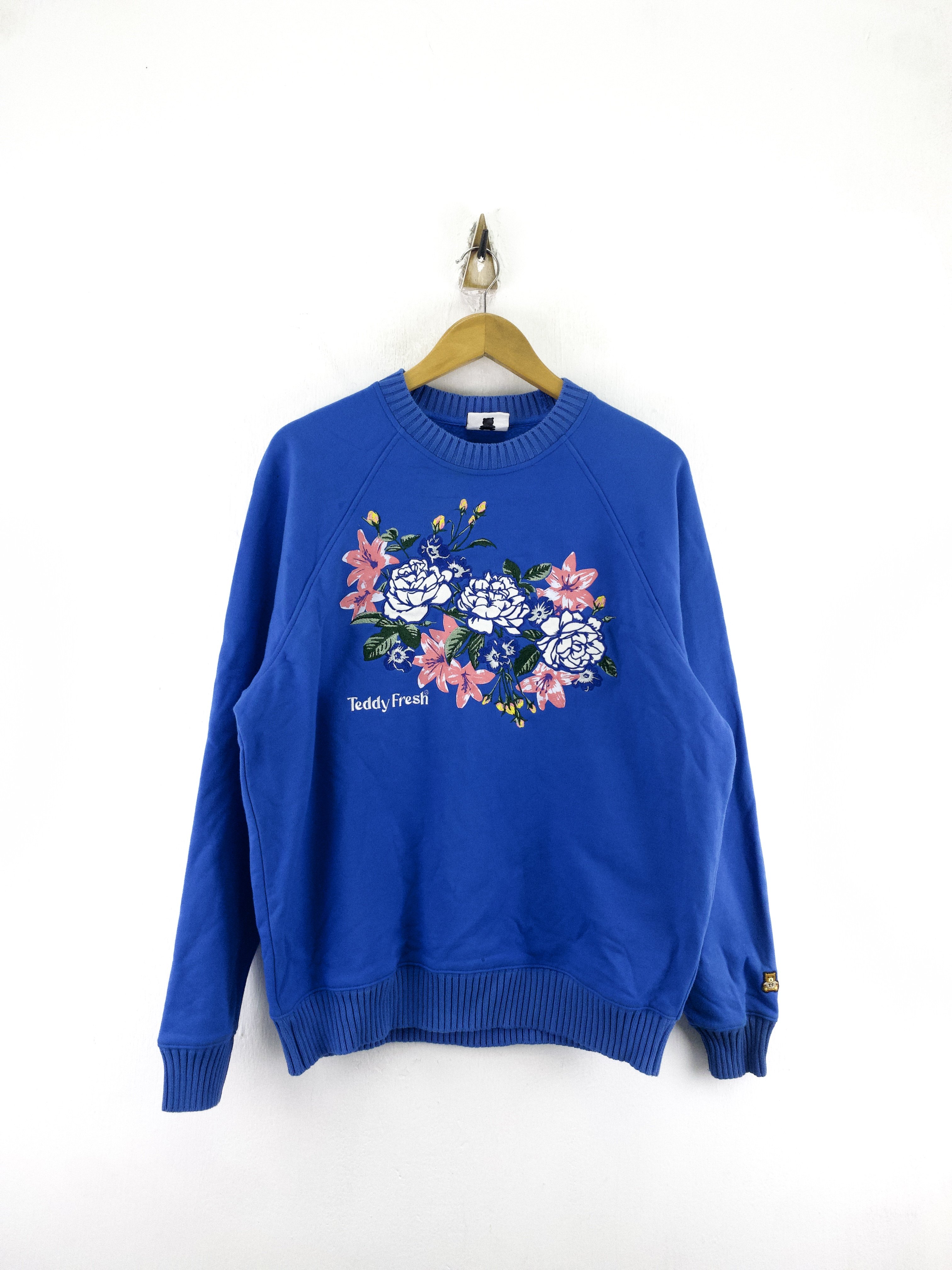 宝蓝色圆领套头上衣女2025秋冬季韩版基础款花朵印花百搭无帽卫衣